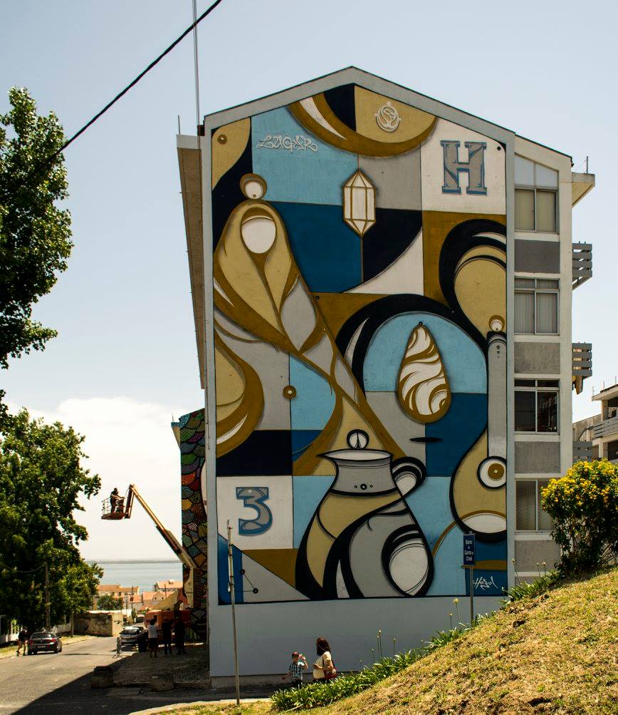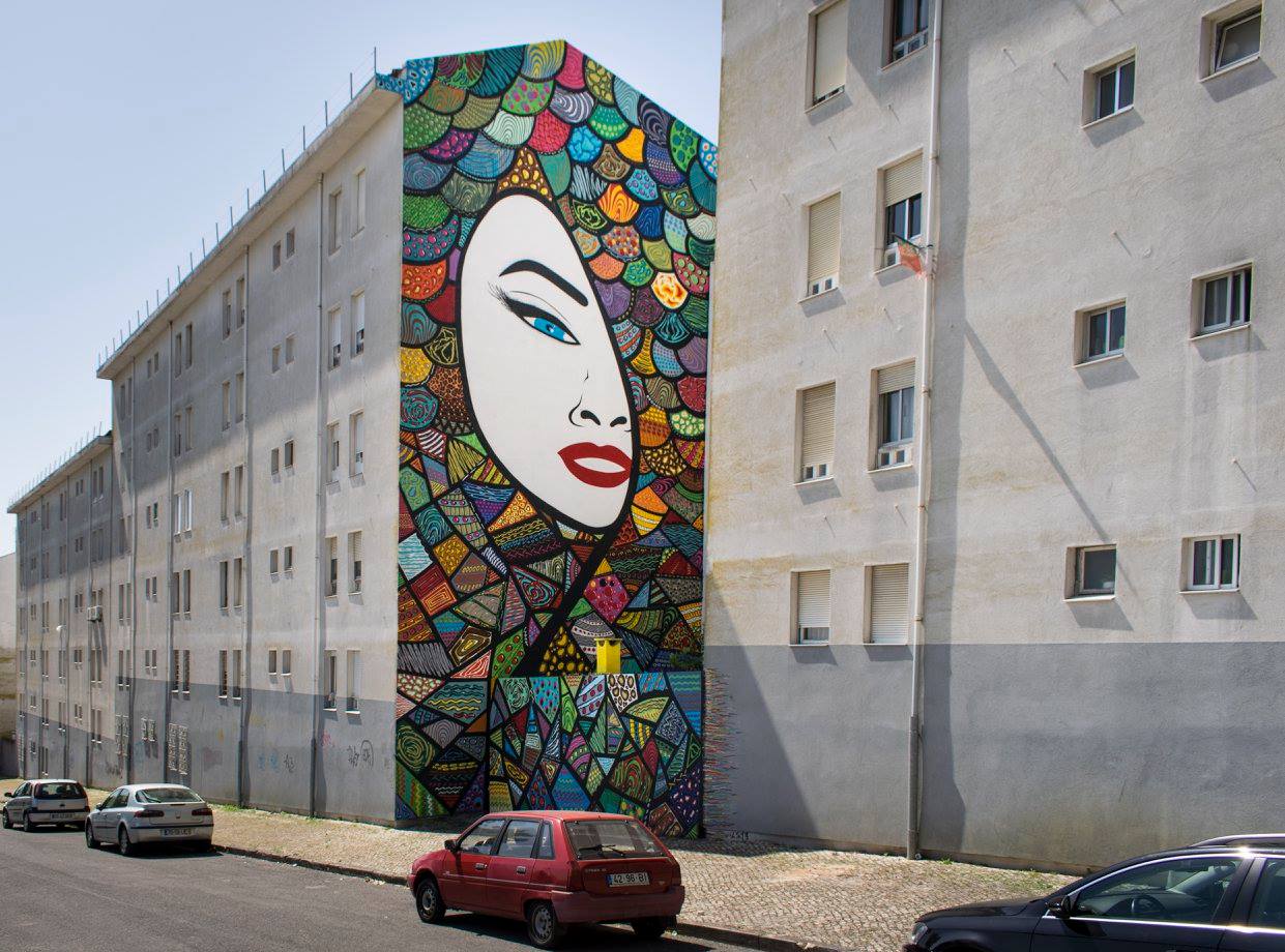Il est aujourd’hui sur le devant de la scène du street art lisboète, puisque mondialement connu. Il a aujourd’hui ses ateliers localisés à Barreiro, de l’autre coté du fleuve, un site qu’on aime !