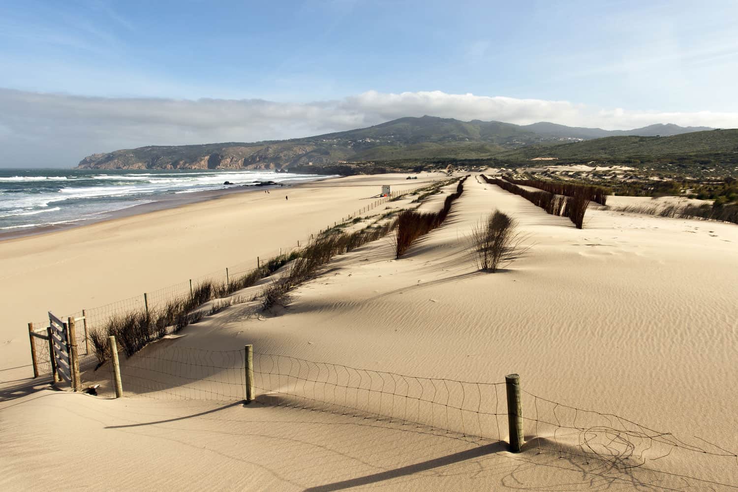 Un peu plus loin, vous trouverez Lagoa de Albufeira. Situé à 20 km de Costa da Caparica, ce lagon est une large bande de sable très exposée aux houles et donc nous avons des vagues toute l’année. Des vagues bien droites qui peuvent monter jusqu’à 3 mètres de hauteur. C'est également le meilleur spot pour le kite-surf.
